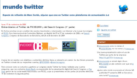 Mundo Twitter , uno de los blogs de referencia acerca del mundo del microblogging instantáneo, se ha fijado en el uso que hacemos de esta herramienta en FICOD2008 .